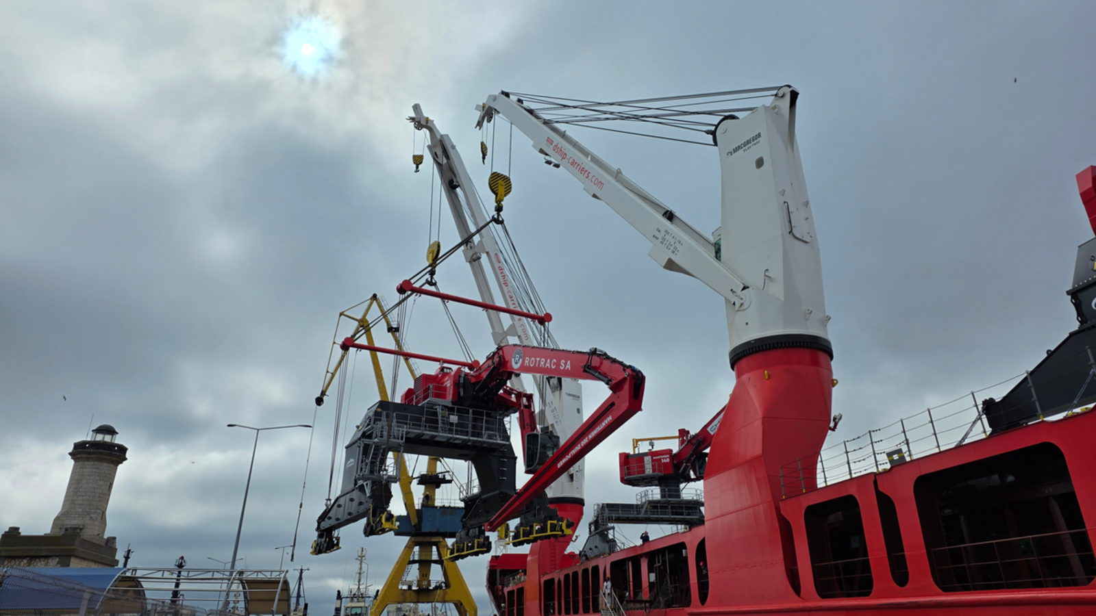 After a sea voyage of more than two weeks, three additional Mantsinen material handlers have arrived in the Port of Constanța: two Mantsinen 140 units and one Mantsinen 200DES, delivered fully assembled and ready for commissioning.
